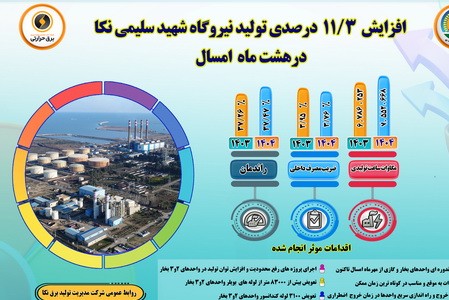 اینفوگرافی تولید انرژی در نیروگاه شهید سلیمی نکا طی هشت ماه امسال